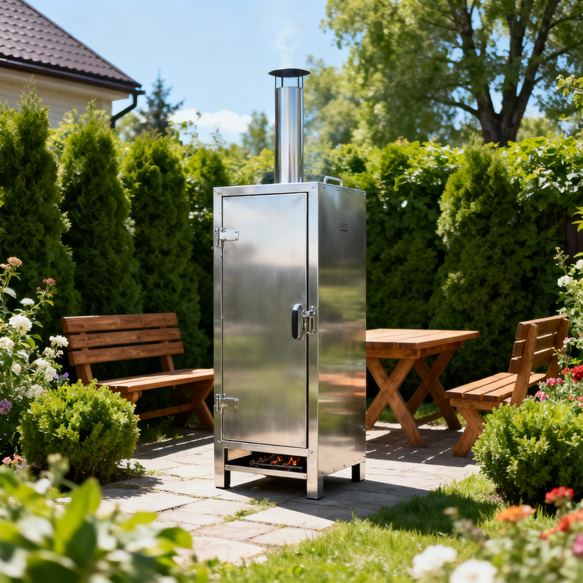 Коптильня для дачи из нержавеющей стали в дачном саду