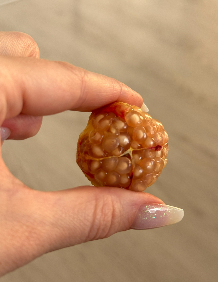 Плоды карликового граната — крошечные, но невероятно эффектные. Будто кто-то уменьшил настоящий гранат до размера бусинки, но оставил всю красоту и суть. Миниатюрная кожура, насыщенный цвет, маленькие зёрнышки внутри — всё по-настоящему, просто в формате «мини». Они съедобные — с лёгкой кислинкой, как у дикого граната. И, честно говоря, очень украшают не только куст, но и настроение. Смотрю на них — и каждый раз удивляюсь, сколько силы и красоты может быть в таких маленьких плодах. Это как природа в миниатюре: ничего лишнего, только суть. И, кажется, совсем не важно, насколько ты большой — важно, сколько в тебе содержится. #карликовыйгранат #комнатныйгранат