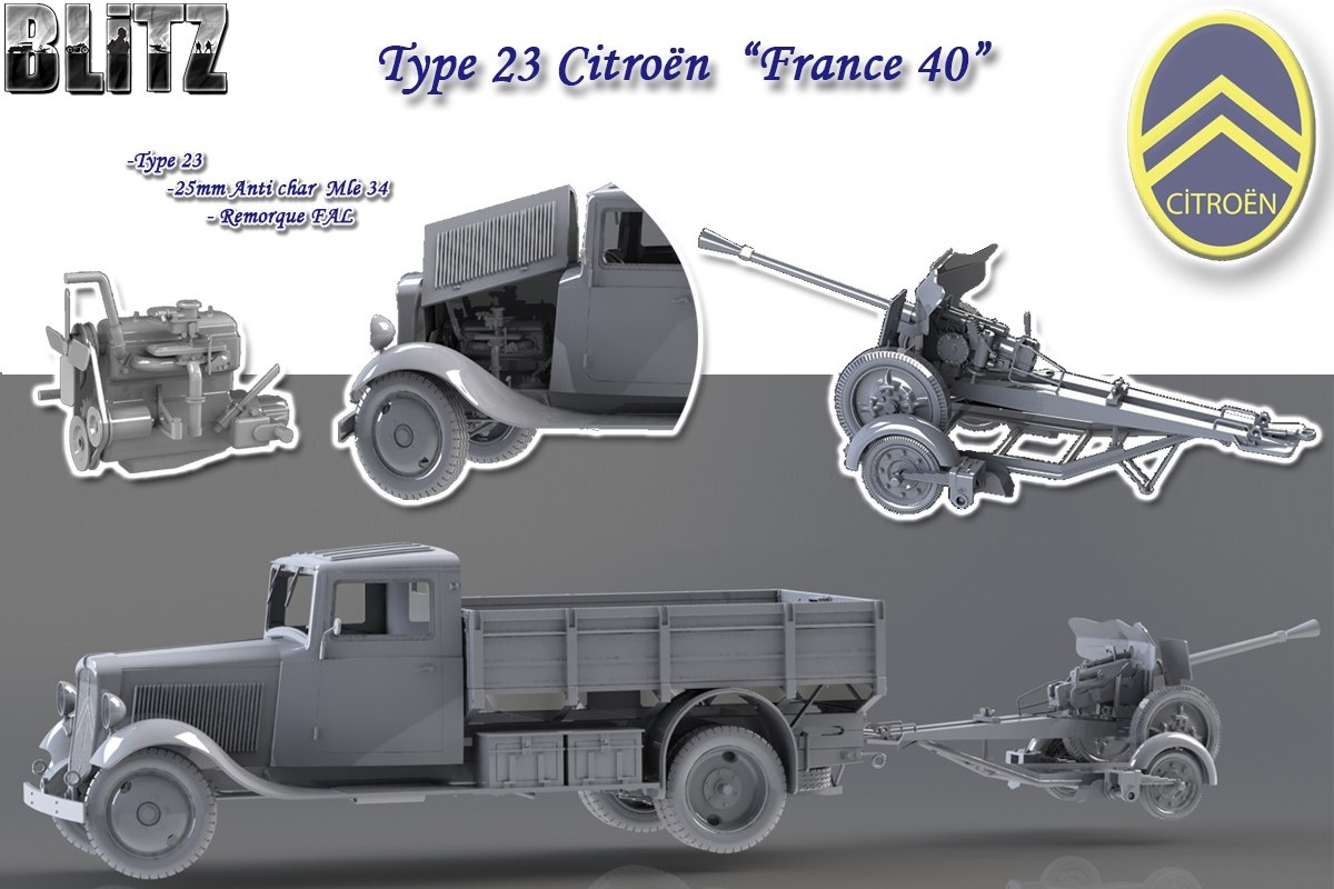BLITZ kit из Франции выпустила на 3D-принтере модель Citroën type 23 & 25mmAC mle34 sur FAL в масштабе 1/35 (а также 1/43, 1/48, 1/56 и 1/72).