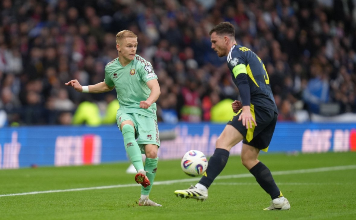 Сборная Беларуси потерпела четвертое подряд поражение в отборе к чемпионату мира, проиграв в Глазго Шотландии со счетом 1:2