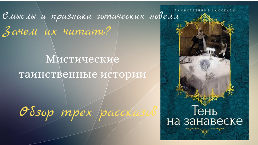 Сегодня в третьем выпуске "Антологии Джульетты" я расскажу вам о трех небольших рассказах из сборника "Тень на занавеске", в который вошли мистические, таинственные истории английских, ирландских, канадских и американских писателей.