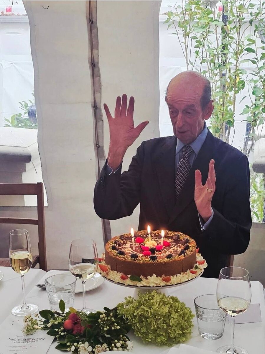 А вот как отметил свое 90-летие герцог Кентский. На званом обеде именинника сопровождал его брат, принц Майкл Кентский. 🎂