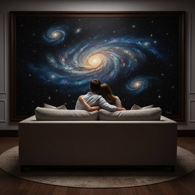 Видели тренд? Мужчина сидит на диване, любуясь огромным портретом своей женщины. Я видела как минимум несколько таких генераций в соцсетях. Красиво, но… Решила пойти против мейнстримного подхода 🫶🏻🤍