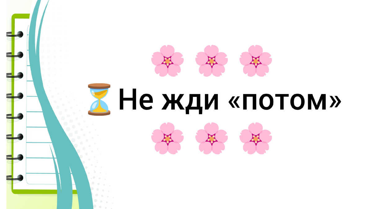 ⏳ Не жди «потом» «Потом…» «Ещё успею…» «Завтра…» «Вот закончу это - и тогда займусь собой…» Но «потом» часто не наступает. Так день за днём мы откладываем свою настоящую жизнь, мечты, желания и радость - на будущее, которое всё время ускользает. Мы теряем мгновения, в которых можно было чувствовать, любить, вдохновляться, расти. 💫 Пора проснуться. Начни сейчас - с одного шага к себе. Не жди идеального момента, он уже здесь. Каждый шаг, который ты делаешь сегодня, - это шаг к жизни без сожалений, к себе настоящему, к тому, кем ты всегда хотел(а) быть. Жизнь пролетит, как один миг, не пропусти её.❣️
