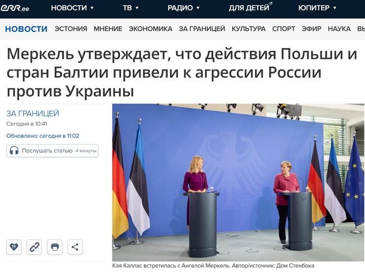 Давайте я вам покажу, как эстонские государственные СМИ делают пропаганду. Грубо и примитивно. Я сравнил первоисточник информации из dailymail.co.uk со статьей в err.ee Сначала ERR пишет дословно что сказала Меркель. Затем идет пересказ своими словами. Затем опять цитируют Меркель. Цитаты точные. А вот пересказ лживый. Сам посыл в заголовке верный, значительная часть статьи - ложь и пропаганда. Daily Mail: "После отделения Донецкой и Луганской областей, двух украинских регионов, которые отделились от страны и стали тем, что Россия называет своими республиками, представители двух стран и Организации по безопасности и сотрудничеству в Европе (ОБСЕ) подписали в сентябре 2014 года первые Минские соглашения. Целью этого соглашения было установление режима прекращения огня между Россией, Украиной, Донецкой Народной Республикой (ДНР) и Луганской Народной Республикой (ЛНР). Меркель заявила, что первые Минские соглашения «принесли спокойствие» на период с 2015 по 2021 год и дали Украине, потер