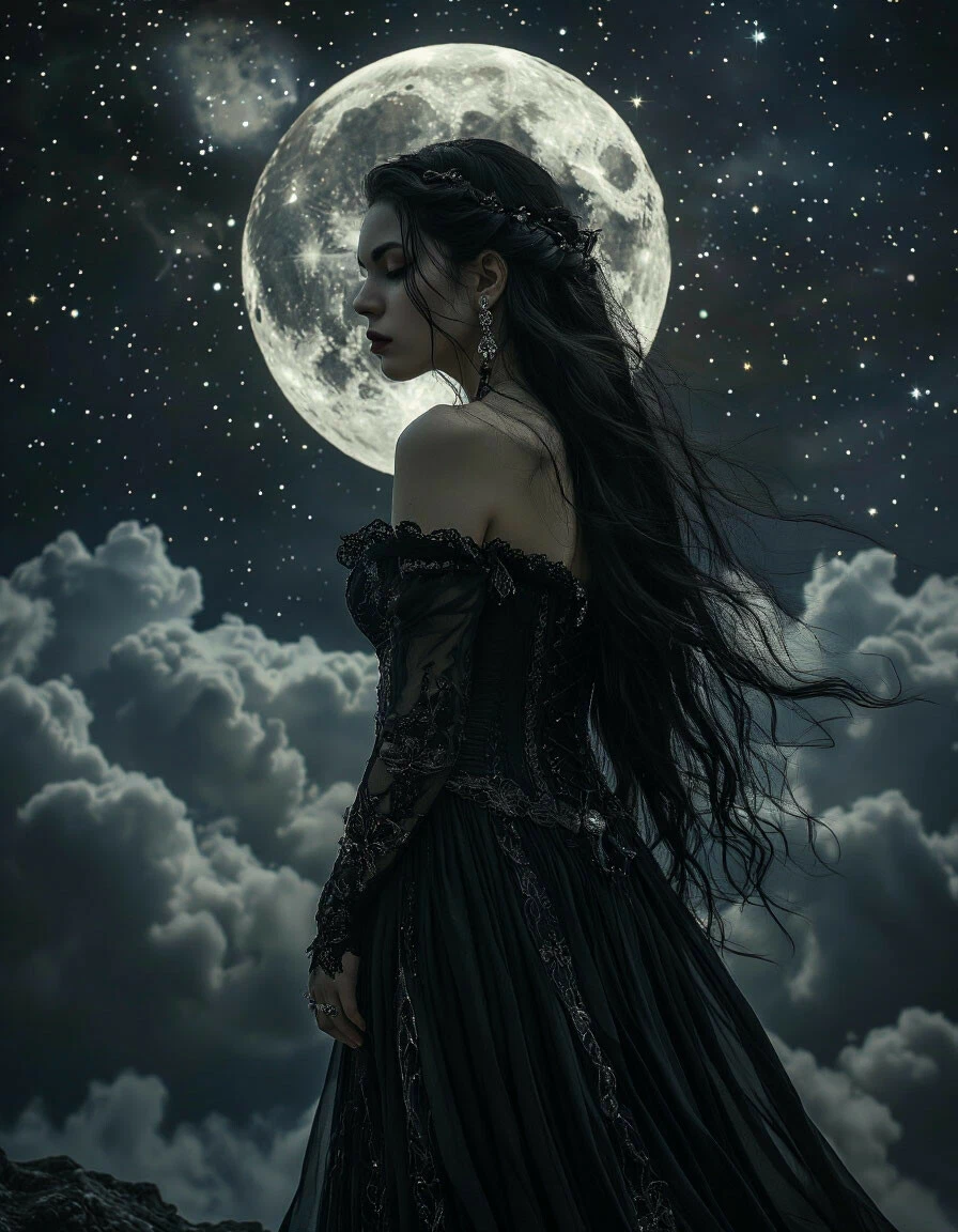 Когда в небесах загорается тень, где даже Луна кажется пронзённой безмолвием, оживает древний архетип — Лилит, Тёмная Луна, Черная Жрица Вселенной. Она не светит — она вспоминает. Она не умоляет — она властвует.