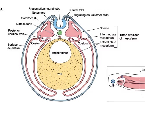 - Приосевую (параксиальную) мезодерму: Лежит непосредственно по бокам от нервной трубки.