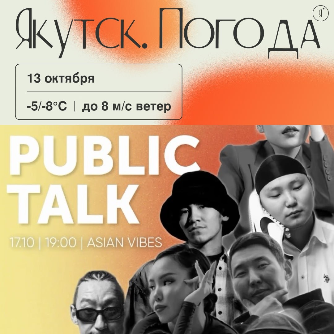 С добрым утром! Вот и понедельник 🤩 Танцевальный чемпионат «О чем танцуешь?» в Якутске На этой неделе в Якутске стартует танцевальный чемпионат «О чем танцуешь?», финальный концерт которого назначен на 19 октября на сцене ЦУиСИ им. Ю.А. Гагарина 🤩 В концерте выступят профессиональные и начинающие танцоры, представители творческих коллективов, преподаватели и студенты учреждений культуры. Зрителей ждет разнообразие жанров - от современных до народных, каждый танец раскрывает разные эмоции и особенности В рамках чемпионата 17 октября состоится PUBLIC TALK на площадке @asianvibes_bistro, где участники и спикеры обсудят актуальные вопросы танцевальной культуры Якутска и ответят на вопросы аудитории. Среди спикеров: @jazzyjosko, @vika_oddvision, @seergemusiq, @anyadrum, @kilalways, @lillddi, @ilyinniyli, @ivanforwin и TAYA IHOW. Начало обсуждения - 19:00, сбор - с 18:30 Вход свободный Online Якутия | Ждем вас в МАХ