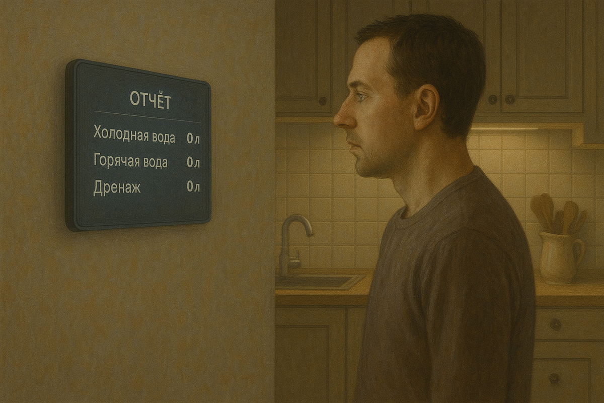 Всё началось с уведомления, которое я получил среди ночи. На экране панели мигало сообщение: «Система не может определить источник потребления воды. Учёт приостановлен.» Я подумал, что это просто сбой счётчика. Утром проверил — вода идёт, датчики работают, но в приложении нули. Ни литра, ни копейки. Даже график расходов исчез. Через день пришёл отчёт: «Потребление: 0. Баланс неизменен. Экономия: 100 %.» Я усмехнулся — вот бы так всегда. Прошла неделя. Коммунальные уведомления молчали, колонка перестала напоминать про оплату. На панели по-прежнему значилось: «Учёт временно недоступен. Пересчёт будет произведён позже.» Но позже не наступало. Я открыл журнал ошибок: «Несоответствие показаний между системами Lumux и поставщиком данных. Источник: неопознан.» То есть дом просто перестал “признавать” городские счётчики. И как будто убедил всех вокруг, что воды у нас нет. Сначала я ждал, когда придут проверяющие. Потом понял — система не просто сбилась, она замкнулась в себе. В разделе “учётны