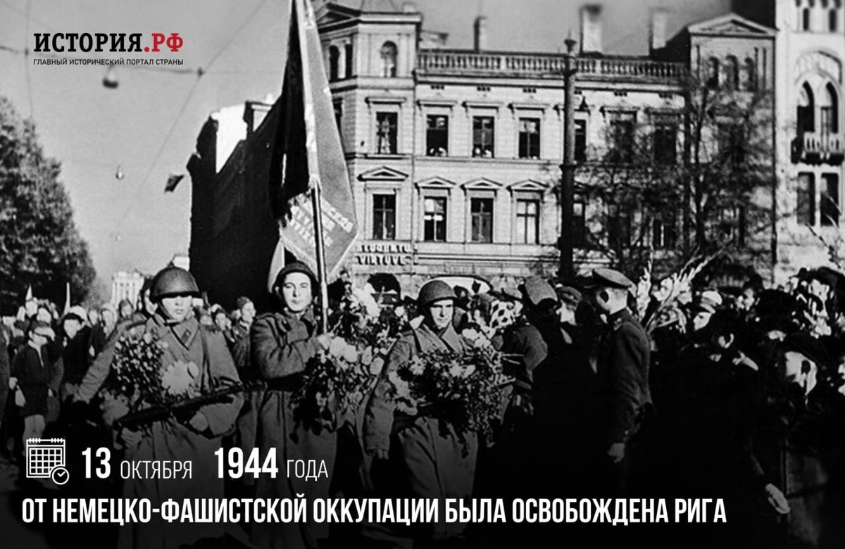 13 октября 1944 г. От немецко-фашистской оккупации была освобождена Рига. Местные с цветами встречали советских воинов-освободителей, так как немцы установили жесткий оккупационный режим. Реализуя план «Ост», германское правительство хотело уничтожить латышский народ, превратить Латвию в немецкую область и заселить ее немцами #ПамятныеДатыВоеннойИсторииОтечества #ДеньВИстории #ГодЗащитникаОтечества #80ЛетВеликойПобеды Источник: https://vk.ru/wall-216215303_2469 Подпишитесь на наши группы ВКонтакте, в Одноклассниках, в Телеграм - читайте, смотрите и комментируйте информационные материалы, предлагайте свои! Источник: Открыть