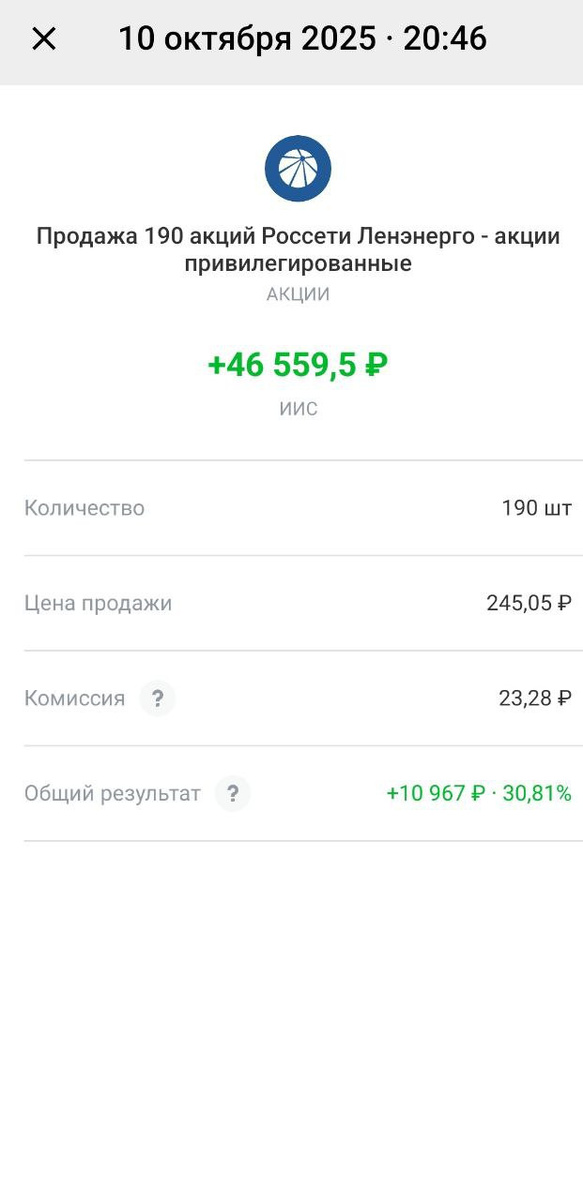🔋Закрыл позицию по акциям Россети Ленэнерго