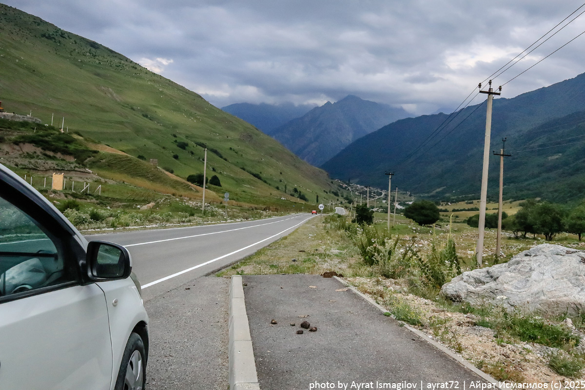 В прошлом году я уже успел кое-что посмотреть в Северной Осетии, правда все еще ничего толком не рассказал об этом. По идее надо бы посвятить республике целый отпуск, но с другой стороны в путешествии за рулем авто хочется проехать и увидеть как можно больше за один раз. Вот и получается частями. Нынче такой частью стал самый отдаленный от центра республики кусочек Алании - Горная Дигория. Из Кабардино-Балкарии я поехал в Дигорское ущелье через Чиколу. Двигаясь вдоль реки Урух вскоре я оказался у памятника Уастырджи. Уастырджи герой нартского эпоса и самое почитаемое аланами божество. Он защитник не только осетин, но и всех людей в целом. Подобный памятник есть и в Алагирском ущелье, и, скорее всего он более известен. А этот, в Дигорском ущелье, возведен гораздо позже (2015). По моему этот изящней и лучше проработан в деталях. Перед Задалесском останавливаюсь на смотровой площадке с видами на противоположный берег Уруха. с "небесными" качелями и флагом, не выдержавшим напора местных ве