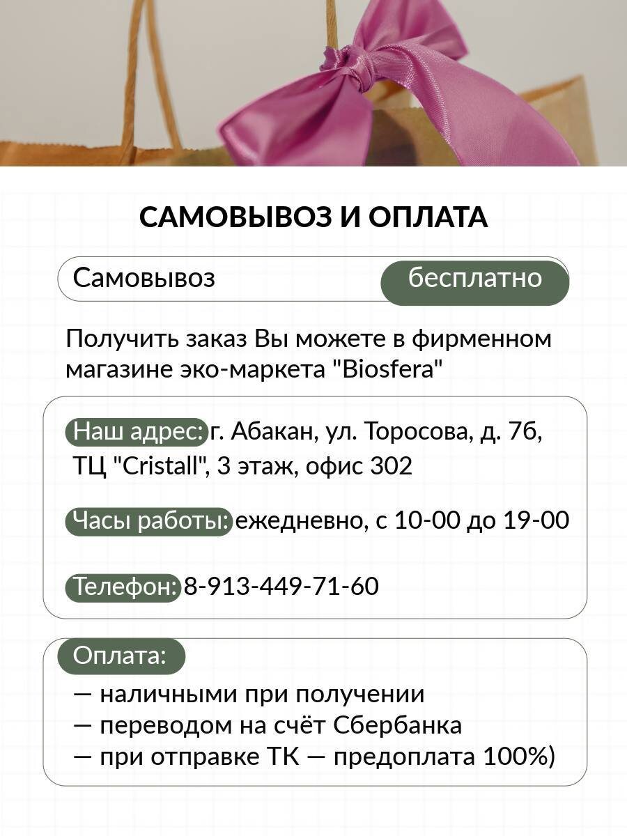 Начало недели - повод напомнить, что у нас есть разные способы доставки: курьером, через транспортные компании и самовывоз❤️ отправляем не только по городу, но и по всей стране 🇷🇺 Все просто: 1️⃣ оформляете заказ через наш сайт 2️⃣ менеджер проверяет детали заказа и связывается с Вами 3️⃣ После оплаты Ваша покупка отправляется на доставку Не забывайте, что с помощью нашего сервиса отправки Вы можете не только приобрести товар для себя, но и заказать подарочный сертификат или поздравить близких даже за пределами нашего региона. Вам необходимо просто собрать подарок. А все хлопоты по отправке посылки мы возьмем на себя❤️ В слайдах собрали все условия доставки, а за консультацией можете всегда обращаться к нашим менеджерам @biosfera_managers