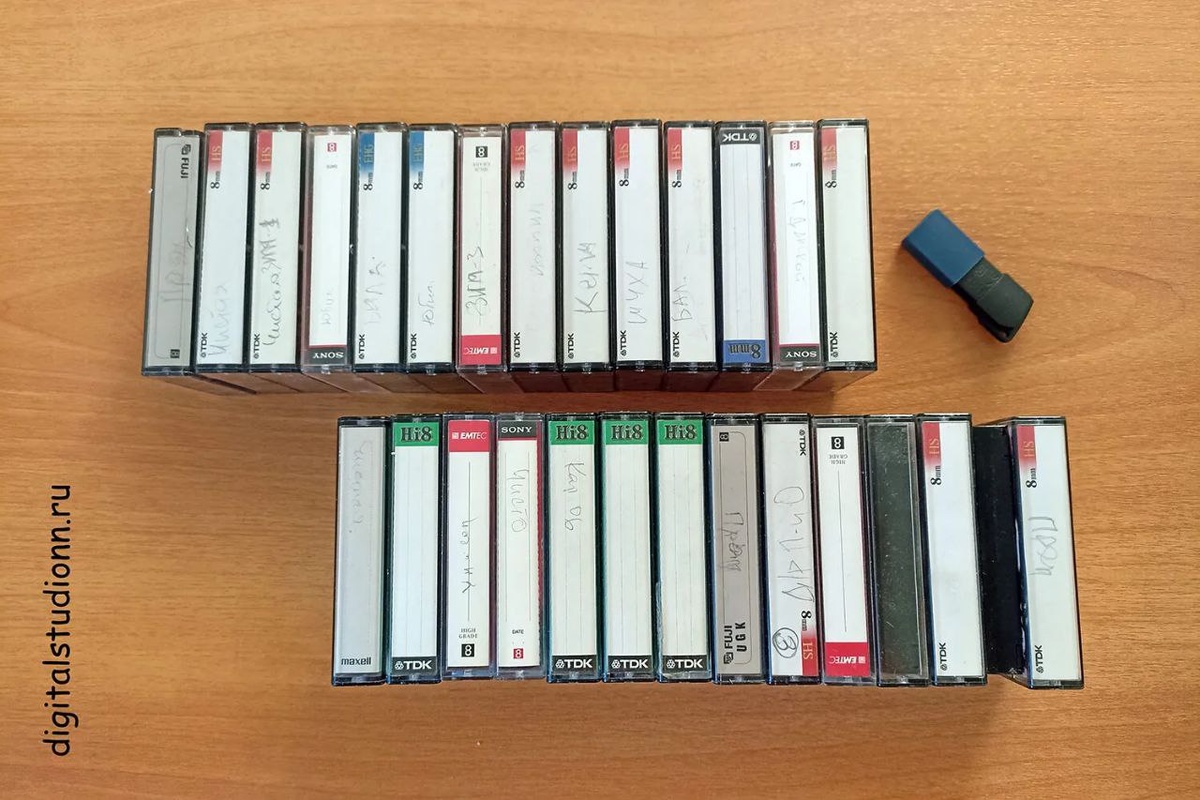 Из последнего. Оцифровка видеоматериалов с кассет формата Video 8, Video Hi8 (1990-2000-е годы). В формат mpeg, на флешку 256 Гб. Более подробно: digitalstudionn.ru/uslugi-video
