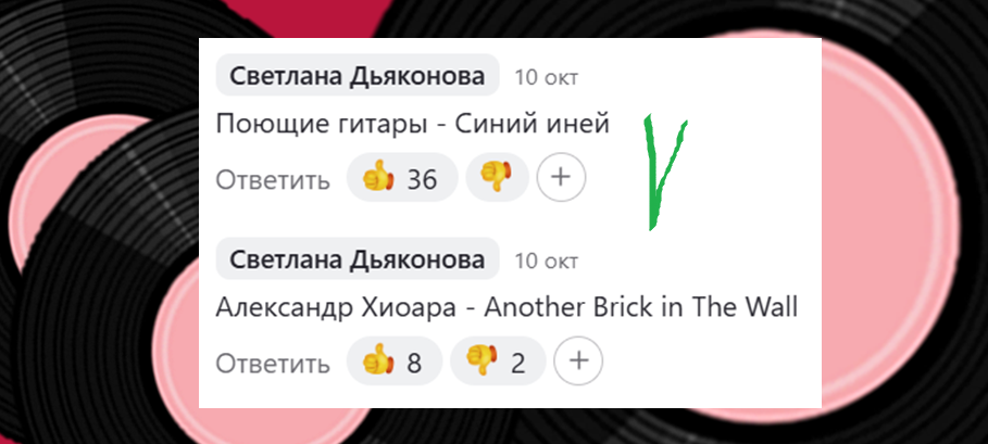 Второй тур, 2-я группа песен. Здравствуйте! Продолжаем конкурс каверов, который перешёл в следующий этап. Сейчас озвучу его условия. Но сначала вспомним, как проходил первый тур. Он был в виде дуэлей. Обе песни могли попасть во второй тур, если набирали больше 30 голосов. В противном случае дальше проходил один кавер - тот, который набирал больше голосов, чем его соперник. Посмотрим итоги голосования в 24-й (последней) паре песен первого тура: По нашим правилам во второй тур проходит группа "Поющие гитары" с песней "Синий иней". Предупреждаю новеньких читателей: в этом блоге не принято ставить дизлайки песням, а если они всё же появляются, мы их засчитываем как лайки. Во втором туре для выхода в полуфинал песням необходимо набрать 40 голосов. Если ни одна из песен не наберёт нужное количество, проходит та, которая наберёт голосов больше, чем другие. В первом туре мы сравнивали кавер с оригиналом, нам было сложнее выбирать, теперь всё просто - сравниваем просто песни в том исполнении,