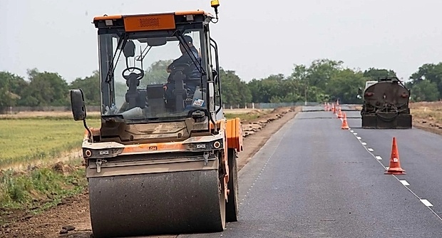 Эта дорога с переходным типом покрытия. Подрядная организация исправила профиль, выполнила устройство основания из щебня и покрытия из щебеночно-песчаной смеси.