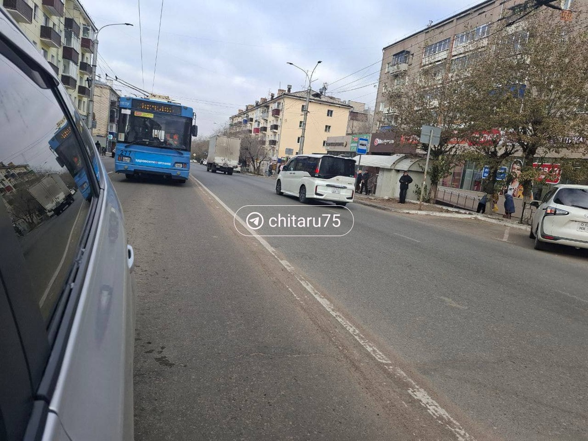 Корреспондент @chita.ru рассказал с места, что все троллейбусы, начиная от Площади Декабристов и до перекрестка с Баргузинской, стоят без движения.