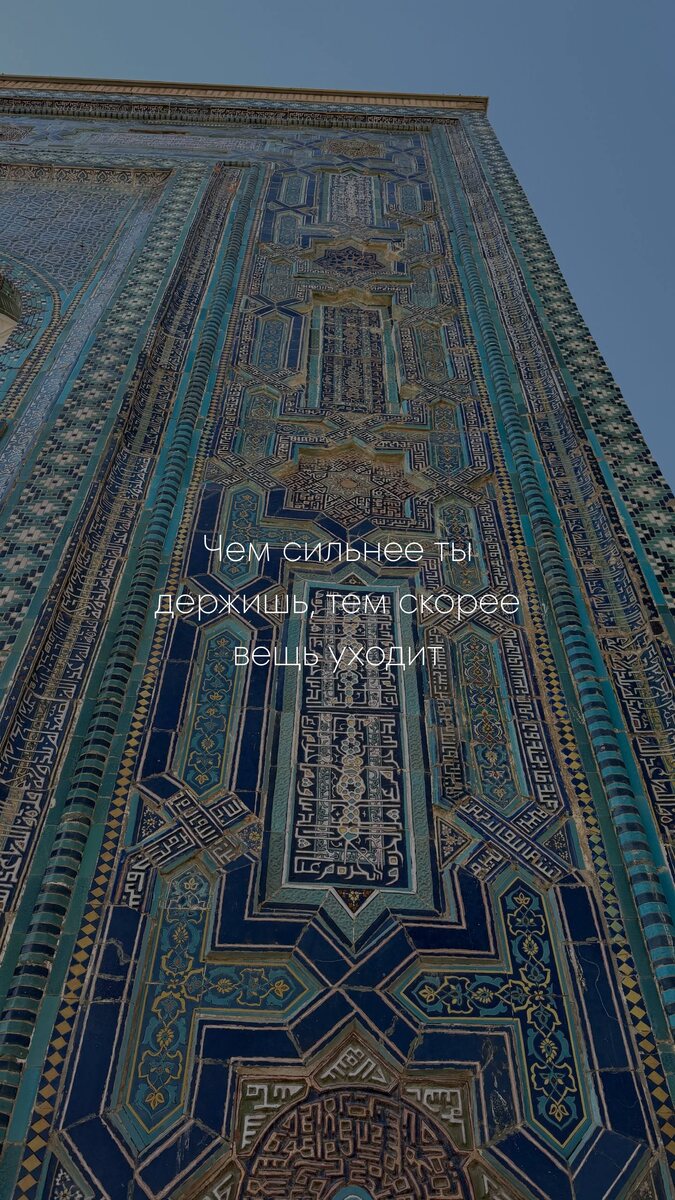 🌛 Новые заставки из Самарканда Я собрала для вас несколько снимков, сделанных в самых красивых местах Самарканда — с цитатами, которые хочется перечитывать. ✨ про отпускание — «чем сильнее держишь, тем скорее вещь уходит» ✨ про внутренний путь — «взгляд, обращённый внутрь, открывает больше дорог, чем тысяча карт» Выбирайте то, что ближе по настроению и цвету, сохраняйте и ставьте себе на экран. Пусть телефон каждый день напоминает о красоте, смысле и о том, что внутри нас больше, чем снаружи 🌿