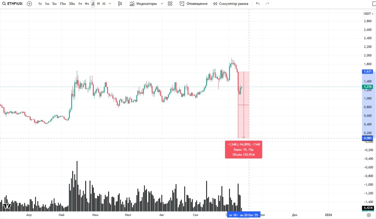 Некоторые альткоины обвалились на 80–90% за считанные минуты. Binance объяснила аномалию движения цен исполнением старых лимитных ордеров, датированных ещё 2019 годом, сработавших на фоне резкого снижения ликвидности.