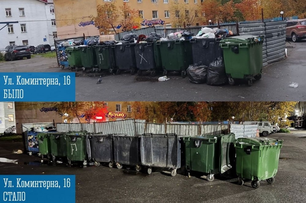 Обычно мы не пропускаем встречи глав округов с жителями дворовых территорий. Более того, зачастую сами являемся инициаторами подобных мероприятий. Но визит ио начальника Ленинского округа Веры Павловой в прошлую среду по какой-то причине пропустили. Что было на встрече – выяснить не удалось: сухой релиз на сайте АГМ рассказал лишь, что исполняющая обязанности начальника управления Ленинского округа встретилась с горожанами около дома № 22 по улице Коминтерна. И далее сразу про встречу с жителями дома № 7 по пр. Героев-североморцев, которые говорили о возможности реконструкции контейнерной площадки. А в фотографиях к публикации почему-то наша «Привокзальная помоечка» в формате #БылоСтало. Если судить по фото (1), забавно в таком случае выглядит «реконструкция». На фото № 2 – текущая обстановка на контейнерной площадке. Впрочем, о возможной реконструкции контейнерной площадки действительно речь шла. Но без участия г-жи Павловой: во вторник инициативная группа двора совместно с регион
