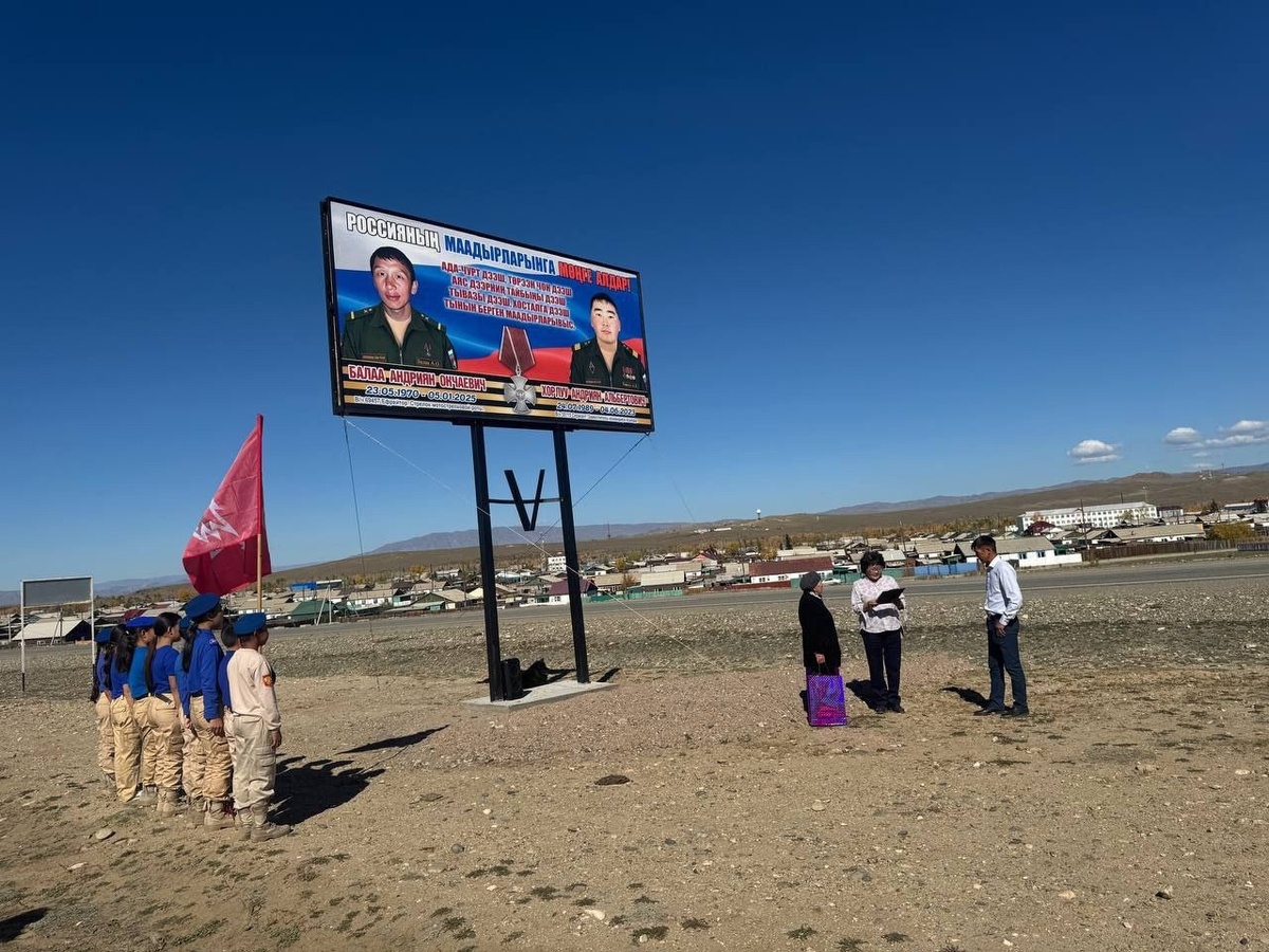 Членами «Комитета матерей военнослужащих героически погибших в зоне СВО» в подгруппе Эрзинского района под руководством родной сестры Героя Айсуулы Александровны родители установили баннеры в честь памяти погибших сыновей, участников специальной военной операции (СВО). Земляки всегда будут помнить Хорлуу Андрияна, Чооду Александра, Болаа Андрияна и Кунгаа Хеймерека. На церемонии открытия присутствовали юнармейцы и представители администрации района, которые выразили благодарность и почтили память погибших героев.