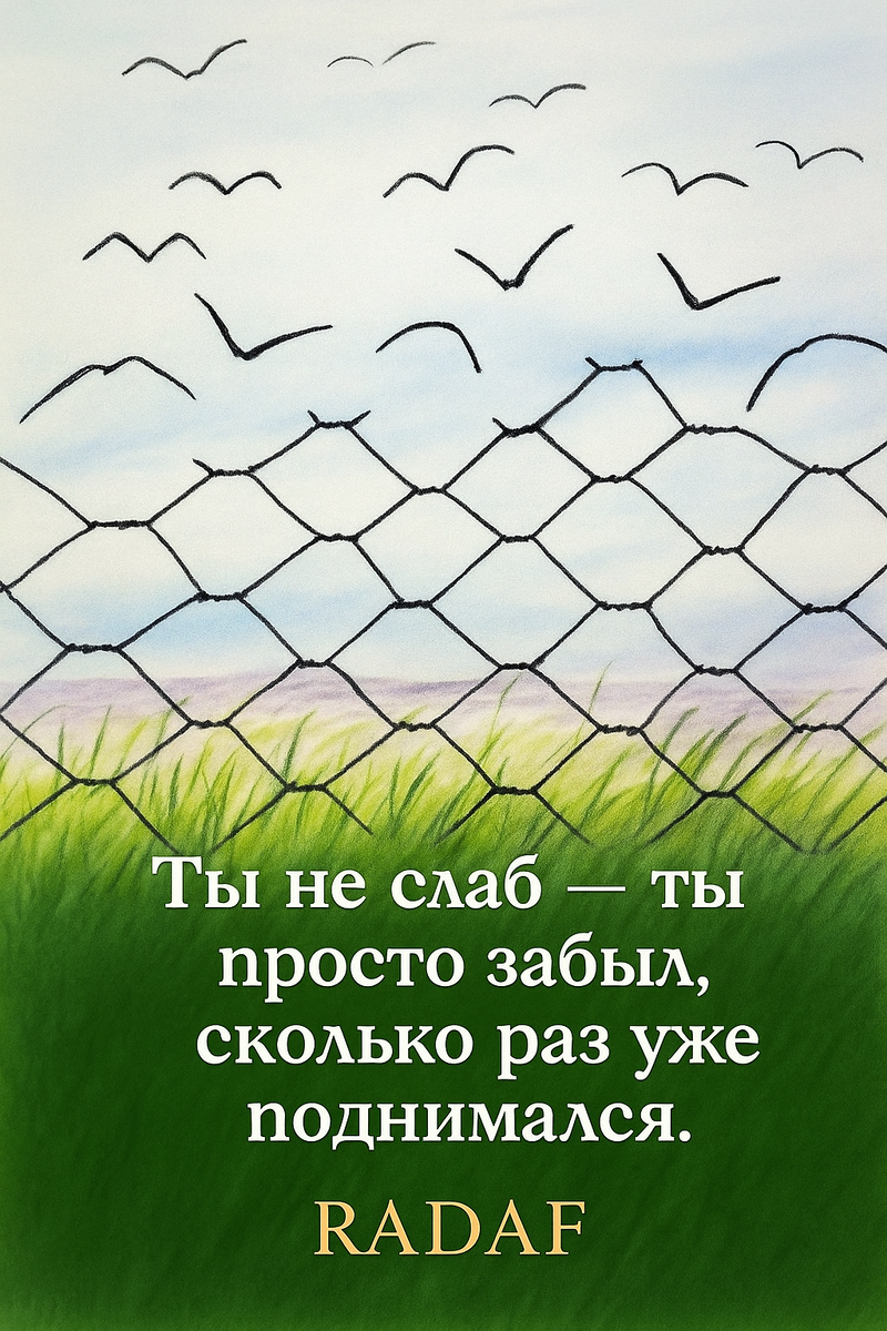 Ты не слаб, ты просто забыл, сколько раз ты уже падал и поднимался. Забыл, сколько раз твоё сознание уже было в тупике, а сердце разбито, и казалось, что это всё, предел. Но это ложь - ты всё ещё здесь, читаешь это, значит, ты поднялся.