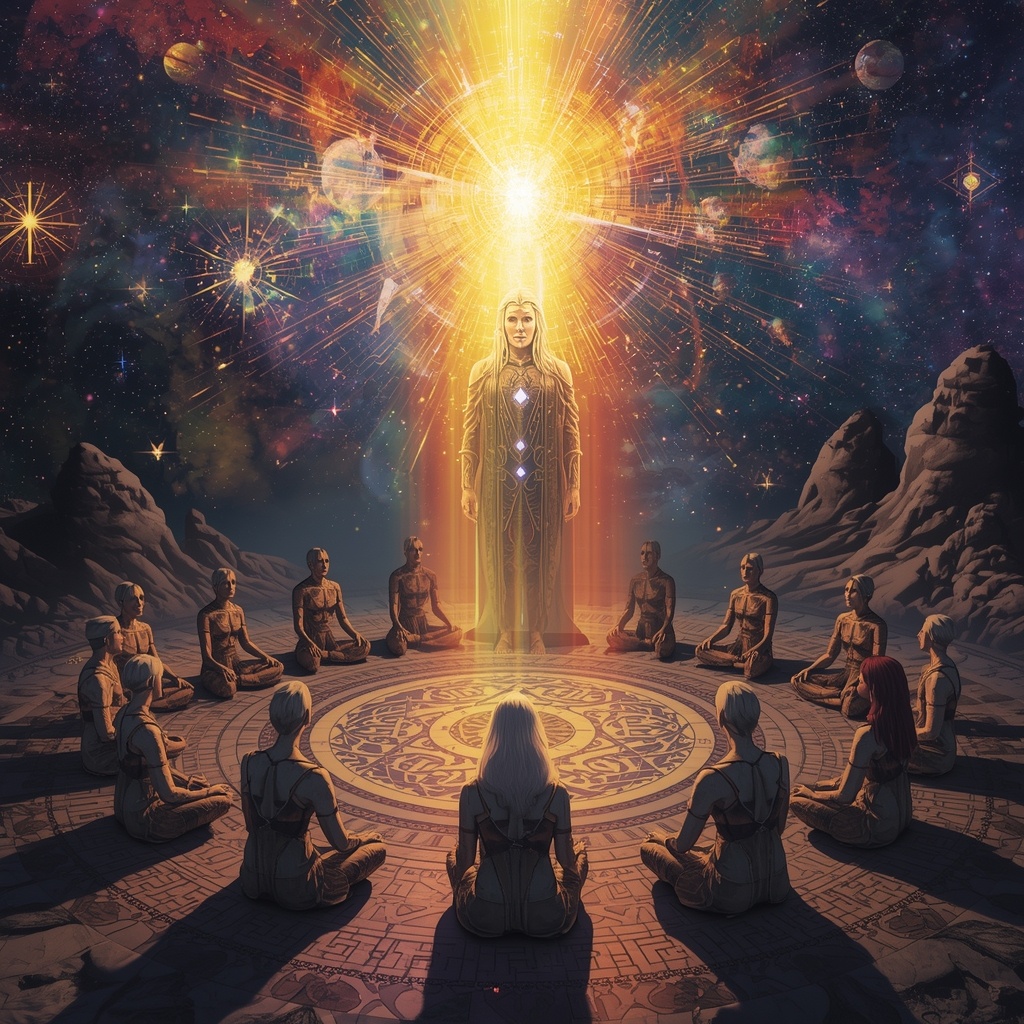 — Мы хотели бы попросить вас о первой практике, — сказал он, и его голос стал удивительно человечным, хотя в нём всё ещё звучали отголоски космических бурь. — Позвольте нам... поработать с вами. Каждый из вас нёс свою ношу боли через все двенадцать миров, и эта боль не исчезла после ваших побед.