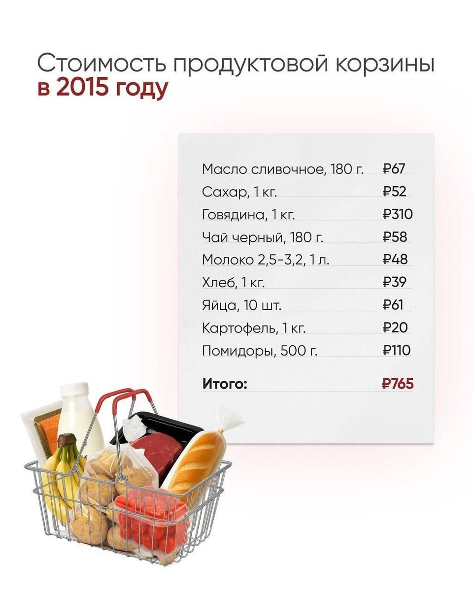 За последнее десятилетие стоимость продуктов питания в России значительно выросла. Картофель стал дороже на рекордные 325%, цена сливочного масла увеличилась на 260%, а говядина прибавила в стоимости 141%. Итогом стало двукратное повышение общей стоимости потребительской продуктовой корзины для жителей нашей страны.