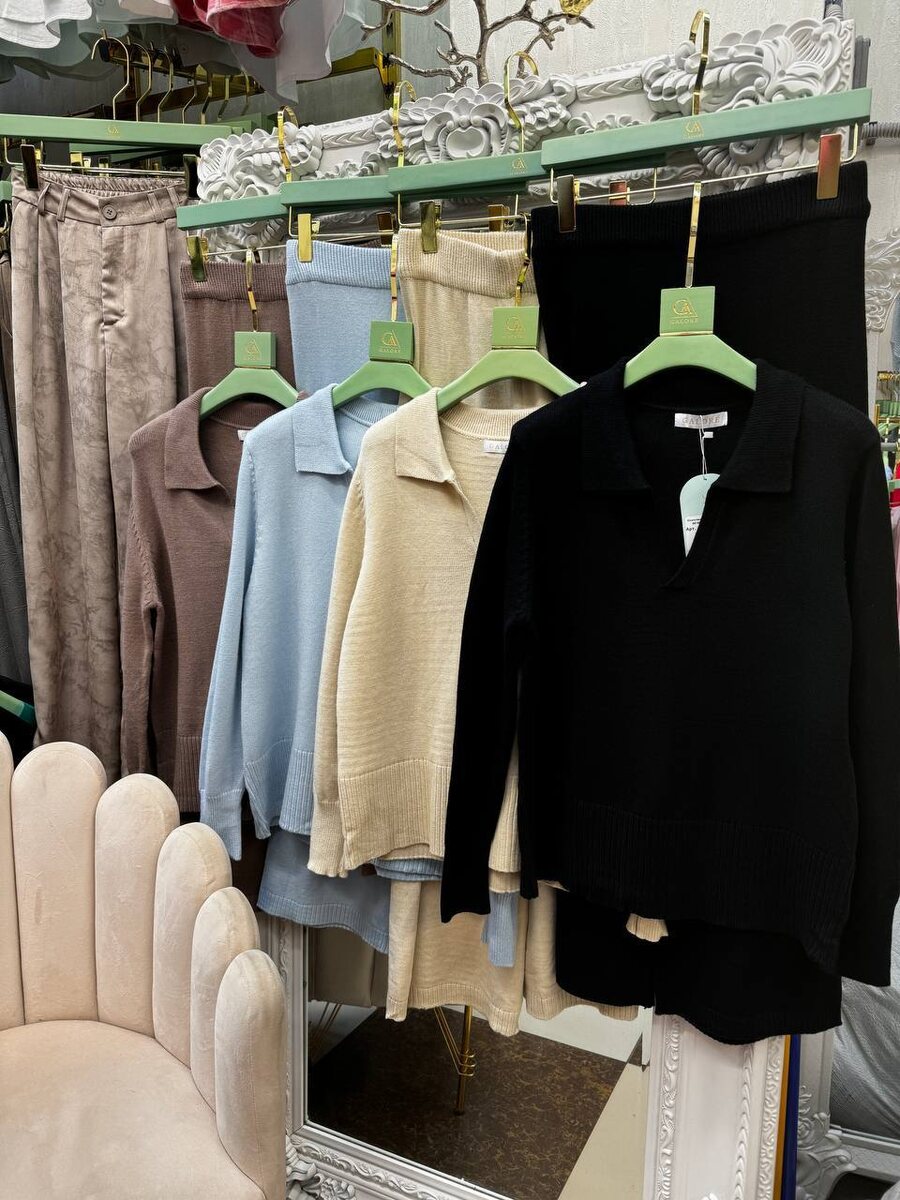 #01426 #Комплект брючный «Марьяна» Джемпер ПОЛО ⛳️ Брюки свободного кроя 💥 ✔️Цвета: черный, молочный, голубой, мокко. ✔️Состав: Вискоза 65% Кашемир35% Длина брюк: 102 см ПОБ: 42 см Длина кофты: 63 см ПОГ: 52 см Длина рукава: 62 см 💰НОВАЯ ЦЕНА 1500₽ 👩❤️👨Минимальная сумма заказа от 15.000₽ 👩❤️👨Наш магазин находится ТК Садовод корпус Б 2, 2в-79 👩❤️👨Консультация: @Galore_2_1_05 👩❤️👨WhatsApp: +7 999 002-32-45 👩❤️👨Полный каталог: https://vk.com/taexc