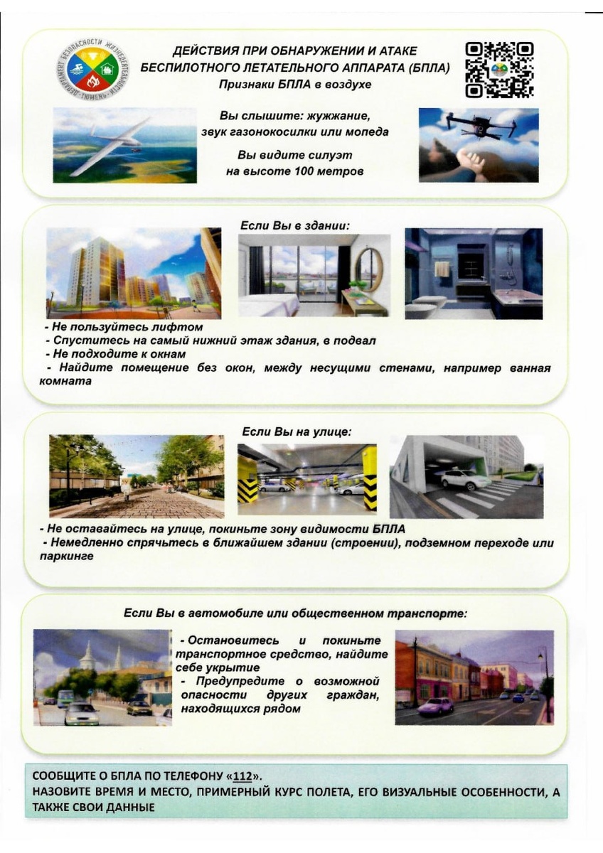 Антитеррористическая комиссия Тюмени информирует о действиях при обнаружении беспилотных летательных аппаратов В случае визуального обнаружения в воздухе БПЛА необходимо: - оперативно сообщить в службу вызова экстренных оперативных служб по номеру "112" или в полицию по номеру "102" следующую информацию: свою фамилию, имя, отчество; место, время, количество и тип обнаруженных БПЛА; примерное направление полета и характер поведения (зависание, барражирование над объектом и т. д.); другую важную информацию; - по возможности покинуть опасную зону и укрыться в ближайших подъездах, цокольных этажах, подвалах жилых домов, подземных переходах, подземных парковках; - пользоваться лифтом нельзя; - если вы находитесь в помещении, необходимо отойти от окон; - предупредить других людей об опасности нахождения на открытой местности; - не пытаться сбить БПЛА. При применении средств поражения с использованием БПЛА: - не поддаваться панике. Выдержка и четкость ваших действий может спасти жизнь, здор