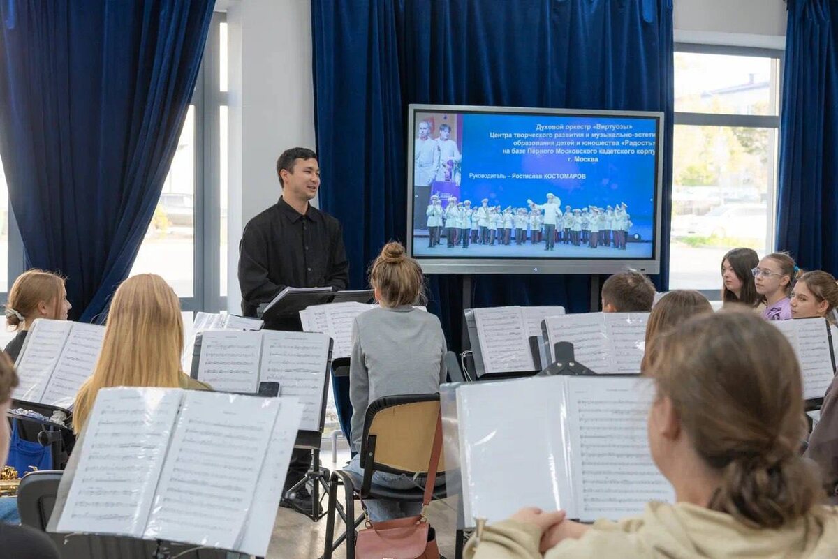 👥 Марина Германовна Даровская, директор Центральной детской музыкальной школы, обратилась к ребятам с тёплыми напутственными словами и отметила, что всего десять лет назад специальность «духовые и ударные инструменты» была редкой, а за это время, благодаря активной работе регионов, в развитии этого направления произошёл настоящий скачок. «Дети, занимающиеся в музыкальных школах, часто не подозревают, что совершают важное государственное дело: они возрождают этот вид искусства, развивают духовое исполнительство и осваивают новые формы — дефилирующие оркестры, различные жанры и новые инструменты. Верю, что ваша энергия и труд принесут большие плоды. Творческих успехов вам!»