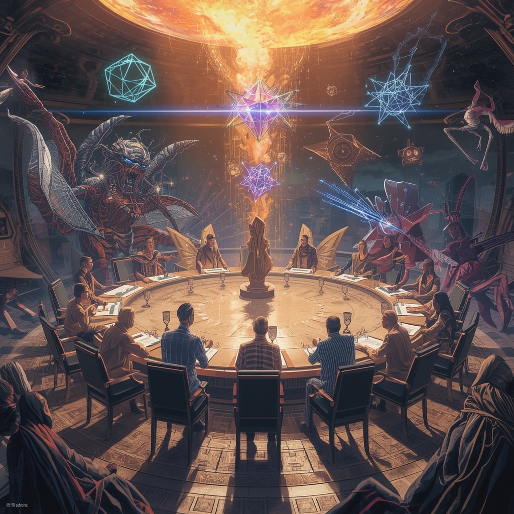 Создание Совета Реальности оказалось процессом, который требовал не только дипломатических навыков, но и глубокого понимания природы самого существования. В центре нейтрального пространства они установили круглый стол — или то, что могло считаться столом в реальности, где понятие "стол" было относительным.