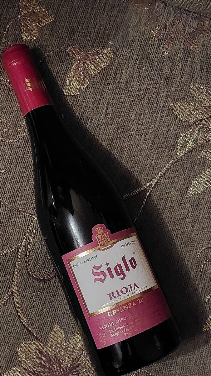 Я заметил, что все, к чему можно применить фразу "старый добрый" оказывается почему-то очень дорогим или дорожающим. Не заметили? Это вино я пробовал пару лет назад, но тогда не оставил о нем заметок. Также я пробовал и рассказывал на канале про Siglo Tinto 2021. Сегодня наконец расскажу и про Siglo Crianza Bodegas Manzonos 2019. Ведь вчера был международный день Темпранильо, надо же как то отпраздновать. Вино продается в бургундской бутылке темного стекла. Ничего особенного. Пробка - средний по размеру прессованный фирменный агломерат. Капсула из добротной фольги. На топе ее венчает герб, сбоку - название серии вин: "век". Этикетка сделана очень грамотно. С одной стороны она полностью классическая. С другой вино сложно спутать на полке с какой-то другой Риохой. Золотой шрифт, который отлично смотрится на терракотовой этикетке, местами подстерся. В купаже, как оказалось, не только темпранильо, но ещё и гарнача+грасиано. Любопытно. Такого не встречал. Обычно добавляется или одно, или др