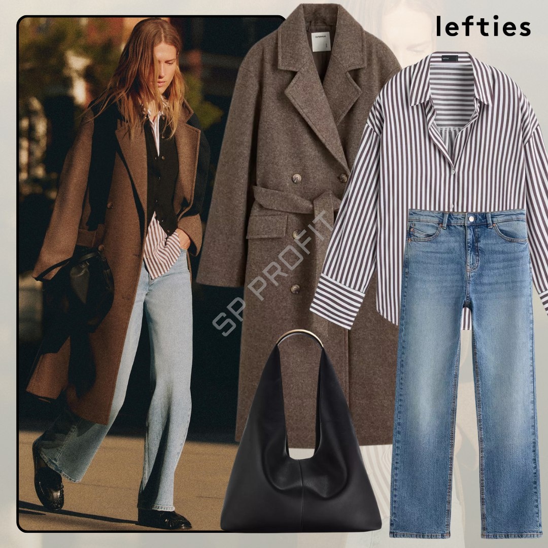 #лукдня #Lefties Этот наряд идеально подходит для повседневного стиля и прохладной погоды. Пальто: Длинное двубортное пальто из плотной ткани в теплых коричневых тонах. Оно добавляет образу элегантности и уюта, а также обеспечивает комфорт в прохладную погоду. Рубашка: Полосатая рубашка с вертикальными полосками в черно-белых тонах. Она создает стильный акцент и добавляет текстурности образу. Джинсы: Прямые джинсы светло-голубого цвета, которые подчеркивают фигуру и делают образ более расслабленным. Сумка: Черная кожаная сумка с минималистичным дизайном. Она практична и дополняет общий стиль, добавляя нотку утонченности. Этот наряд сочетает в себе комфорт и стиль, идеально подходя для прогулок, встреч с друзьями или повседневных дел. Пальто 4801₽ + доставка Рубашка 2133₽ + доставка 40% хлопок Джинсы 2667₽ + доставка 99% хлопок Сумка 3067₽ + доставка 29 x 46 x 13 см Остались вопросы: ТГ https://t.me/liliya_ly