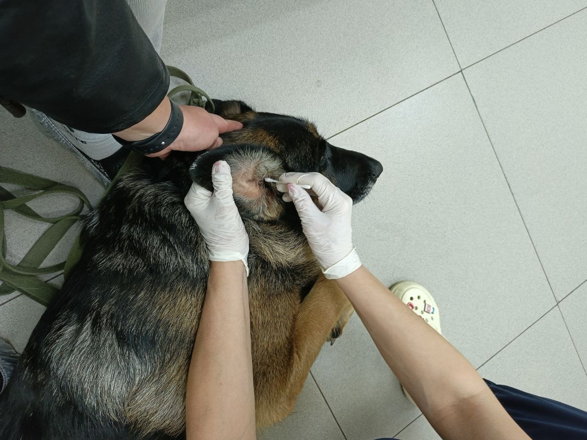 У нашей девочки Корсы начался сильный зуд в ушах — чешет их, трясёт головой, видно, что ей очень некомфортно