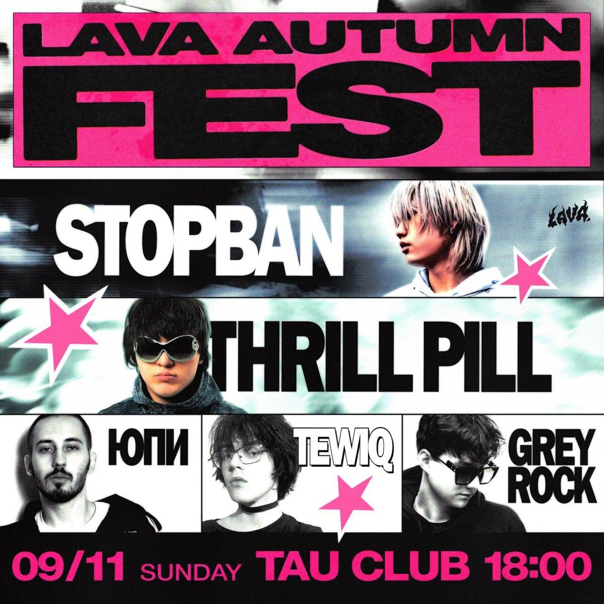🎫 – «LAVA AUTUMN FEST»: большой музыкальный фестиваль в Москве 🎤 – THRILL PILL, STOPBAN, tewiq, greyrock, Юпи 📍 – «TAU», Москва, Рязанский просп. д. 8А стр. 10 🗓 – 9 ноября 💵 – от 1 000 руб. 🔗 – билеты (14+) #концерт #lavaautumnfest #taumoscow #москва #thrillpill #stopban #tewiq #greyrock #юпи 👉 Список концертов: октябрь • ноябрь • декабрь @mainstreamusic