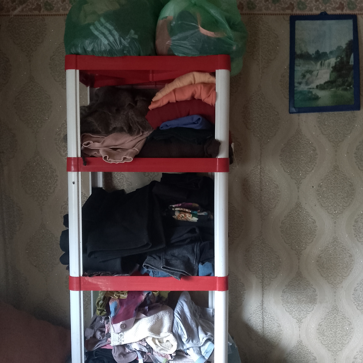 Дом у меня маленький. Гардероб стоит в кладовке с ним дом и продавался. Он, гардероб, старый советских времён ещё. Лакированный без зеркала. Как его в кладовку тесную затащили для меня секрет. Новый я купить не могу, а эту махину смысла нет затаскивать. Живём без гардероба в доме. На такие стойки складываем вещи. Вчера летние убрали в кладовку, чтобы не мешали и место не занимали. Оставили кое что, что будет носиться. Куртки так висят. Есть и ещё одна вешалка. Обувь на обувнице. Вполне всё аккуратно и под рукой нужное. Сергей начал печку делать, что называется гром не грянет мужик не перекрестится. Лето прошло, то некогда, то ноги болели. Дотянул до осени. Три дня потопили печка задымила жуть. Почистил. Готовит под ремонт. Глина своя есть насчёт песка договорился. Обогреватели поломались пока и не холодно. Днём двигаемся постоянно, ночью под одеялом прекрасно себя чувствуем. Делать всё равно быстрее надо холодает стремительно. Сделает, конечно. В идеале бы кафель положить, но не принц