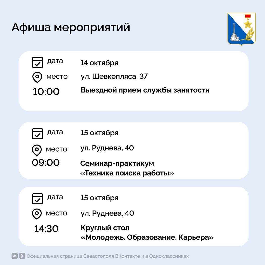 Бесплатные мероприятия Кадрового центра «Работа России» пройдут с 14 по 16 сентября. Расписание — в карточках. Вопросы — по телефону +7(8692)66-22-92 Подписывайтесь на наш канал в МАХ