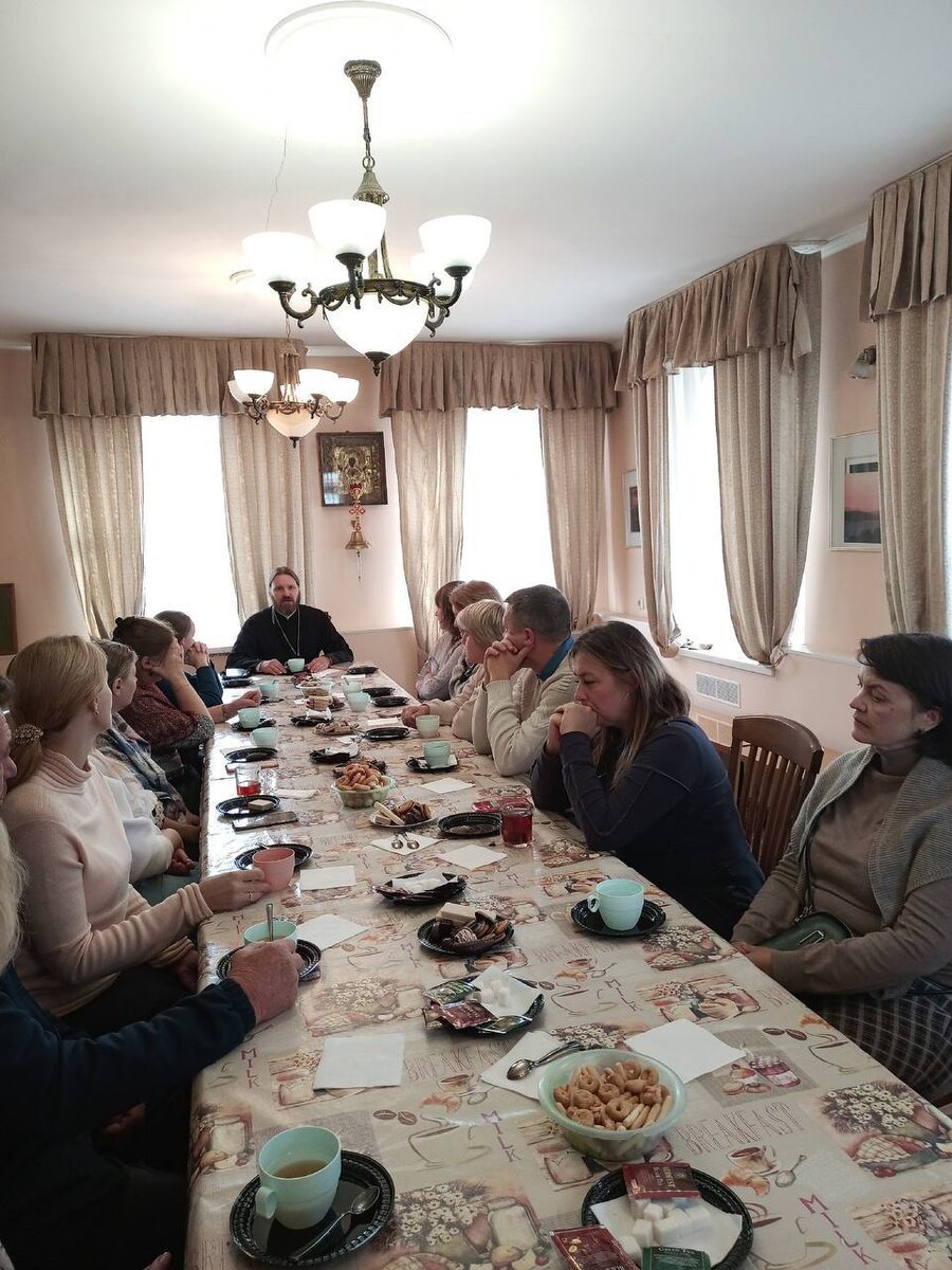 Каждый родитель встречается с трудностями воспитания своего ребенка. Как помочь родителя и подростку пройти этот непростой путь? Тематическая встреча "Что значит любить своего ребенка?" прошла в актовом зале братского корпуса при Богоявленском соборе. Духовенство, опытные педагоги, психологи и многодетные родители обсуждали проблемы родительско - детских отношений. За дружеским чаепитием участники встречи делились возникшими вопросами, обменивались опытом. Для многодетных родителей, чья жизнь полностью посвящена воспитанию детей, подобные встречи очень важны. В завершении беседы каждый родитель получил памятку с незаменимыми рекомендациями.