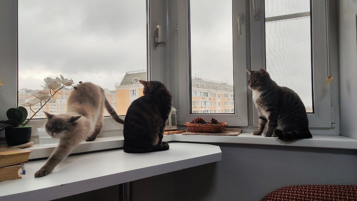 Большая редкость! Поймала своих котиков в один кадр)) Четвёртая кошка прячется. Чтобы все 4 в одном кадре - это что-то за гранью возможного😆