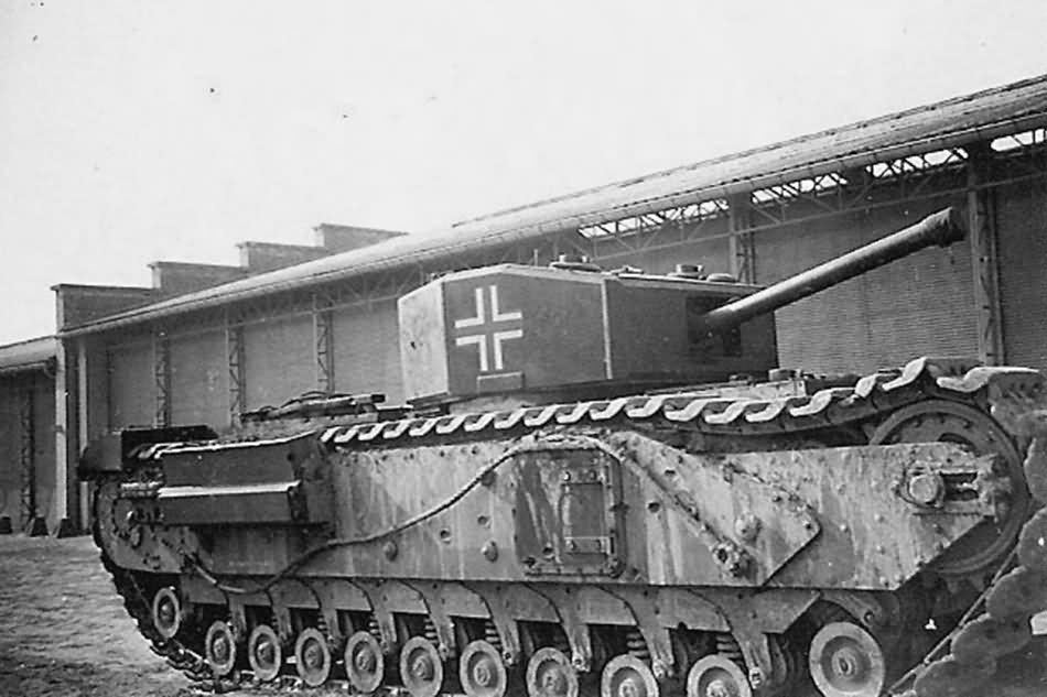 Пролог: Трофей с брутальной внешностью На снимке, лишённом точных координат и даты, запечатлён британский пехотный танк «Черчилль», несущий на своей броне не родной оливковый цвет, а серо-жёлтый камуфляж вермахта и немецкие тактические знаки. Его мощная, угловатая форма, созданная для прорыва укреплений, теперь служит другой стороне. Этот кадр — наглядное свидетельство практицизма вермахта, не гнушавшегося использовать любой доступный ресурс, и одновременно — история о неоднозначной репутации одной из самых узнаваемых машин Второй мировой. Контекст: Как «Черчилль» попадал к немцам Трофейные «Черчилли» оказывались в руках вермахта несколькими путями, чаще всего — в Северной Африке и, реже, в Западной Европе: 1. Бои в Тунисе (1942-1943): Первые «Черчилли» (модификации Mk.III и Mk.IV) вступили в бой именно здесь, во время операции «Торч». В хаотичных оборонительных боях против корпуса Роммеля несколько десятков этих танков были подбиты или брошены из-за поломок и позже захвачены. 2.