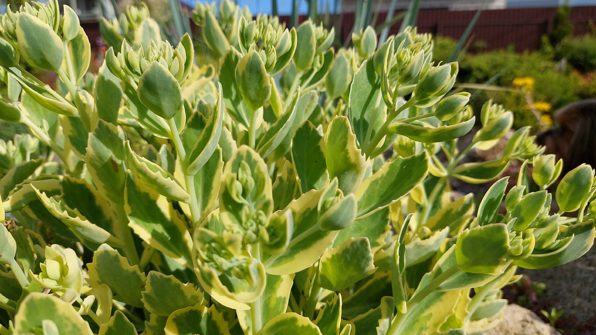 Сегодня хочу посвятить тему очиткам, но в этот раз не почвопокровным, а видным. Очитки неприхотливые растения, которые не требуют никакого ухода и никаких подкормок. Растут сами по себе, срезаю их поздней осенью. Рано весной начинают уже вылезать новые кочки. У меня их несколько видов, приступим к просмотру. Летом появляются цветы на концах побегов, которые к осени распускаясь, приобретают розовый цвет. Привлекает насекомых до самых заморозков. Красиво смотрится на закате, на фоне элимуса голубого. Распускается рано, уже в середине лета. Имеет розоватые цветки, в тени приобретают красноватый оттенок. А как вы относитесь к очиткам?