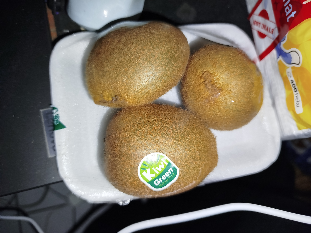 Киви - это экзотический фрукт, поэтому стоит дорого - его везут из Китая. В "Буане" килограмм стоит, как крыло самолёта, а Амира давно хотела его попробовать (киви, а не крыло). И вот в воскресенье поехали мы в недавно открывшийся магазин фруктов, а там упаковка из трёх киви по 10000 - то есть, по 50 рублей. Это раза в три дешевле, чем в "Буане". Конечно, взяли на пробу, правда, три дня киви дозревали. А чтобы было не так скучно ждать, пока дозреют киви, взяли белимбин Тоже по 10000 упаковка из трёх, но веса в ней больше, чем в киви. Ещё купили два манго (килограмм 15000 (75 рублей) И дыню (1кг 10000 - 50 рублей) В дыне чуть больше килограмма, в манго чуть меньше, получилось всего фруктов на 42000 рупий - 210 рублей. Хорошие цены в этом магазине, ниже, чем во многих других. А в понедельник поехали в "Буану" за яйцами (они там хорошие и недорогие). Яйца тоже купили, не забыли. Наконец-то взяли острые куриные сосиски Действительно острые, не обманули Также купили две упаковки прокладок