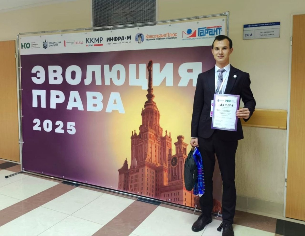 С 10-11 октября 2025 г. в МГУ им. М. В. Ломоносова прошла масштабная международная научно-практическая конференция "Эволюция права". 🏆 Обучающийся группы 06-бЮРо-22-1 Артур Шакиров выступал в секции "Современные интерпретации и актуальность классических политико-правовых учений". В рамках секции он представил доклад на тему: "Рецепция германской аксиологической методологии в российской теории права конца XIX века: проблема адаптации неокантианских концепций". По итогам выступления Артур был признан победителем в своей секции! 💭 Особую благодарность за подготовку следует выразить научному руководителю Артура – Кузьменко Валентине Игоревне, чья поддержка и профессиональное наставничество сыграли важную роль в успехе студента.