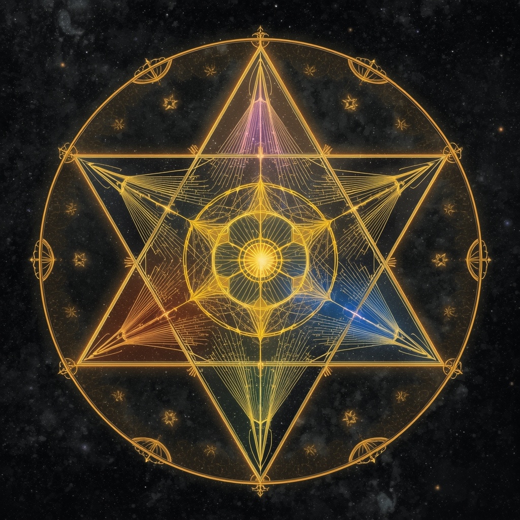 В воздухе над ними появилась проекция — сложная трёхмерная мандала, которая постоянно вращалась, переходя от золотых узоров стабильности к серебристым потокам текучести, а затем к фиолетовым спиралям энтропии, и снова к золоту, но уже на новом уровне.