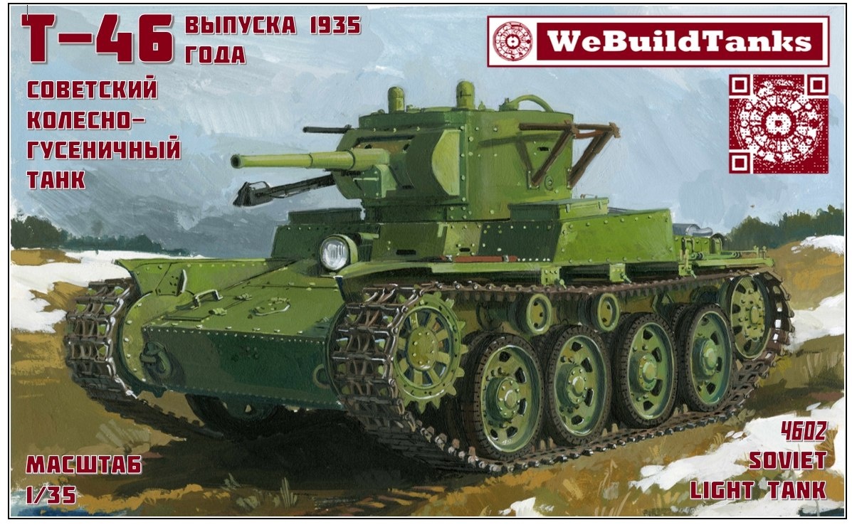 Московская WeBuildTanks показала коробку своей выпущенной на 3D-принтере модели танка Т-46 в масштабе 1/35: Т-46 выпуска 1935 года советский колесно-гусеничный танк (каталожный номер 4602)