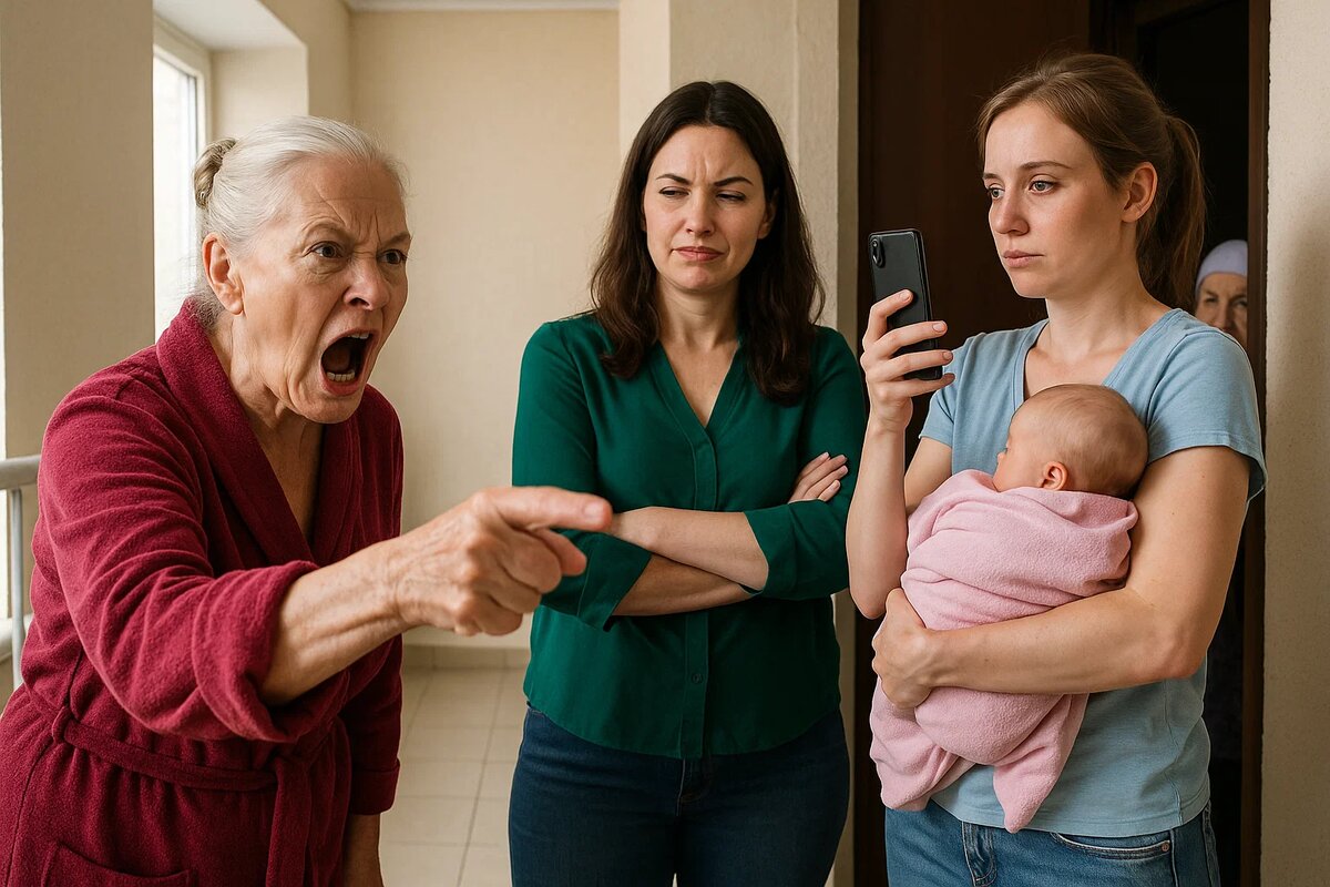 Виктория стояла молча. Камера писала. Свекровь кричала ещё две минуты, пока Лилия не выглянула и не втащила мать обратно.