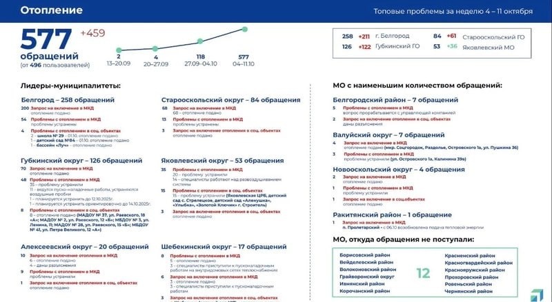 В Белгородской области запустили отопление в большинстве многоквартирных домов Тепло подано в 99,7% многоквартирных домов региона. Как сообщил заместитель губернатора по ЖКХ Сергей Довгалюк, теплом обеспечены уже 4 630 жилых зданий. Временные трудности сохраняются лишь в 16 домах, где либо продолжаются капитальные ремонты, либо требуются дополнительные работы. Отопление запустили в 2 541 объекте социальной сферы, включая 984 детских сада и школы, 661 медицинское учреждение и 896 объектов культуры и спорта. Небольшое число социальных объектов пока остаются без отопления — в 16 образовательных учреждениях идут ремонтные работы или организован дистанционный формат обучения. Управляющие компании продолжают пусконаладочные работы, чтобы до 15 октября обеспечить теплом все без исключения здания. Подписаться на 🗞🗞 | Поддержать бустом