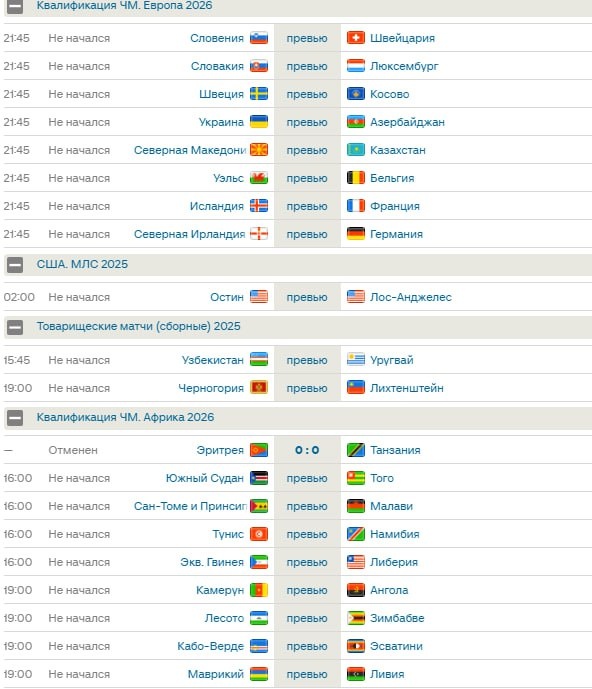 Матчи на понедельник