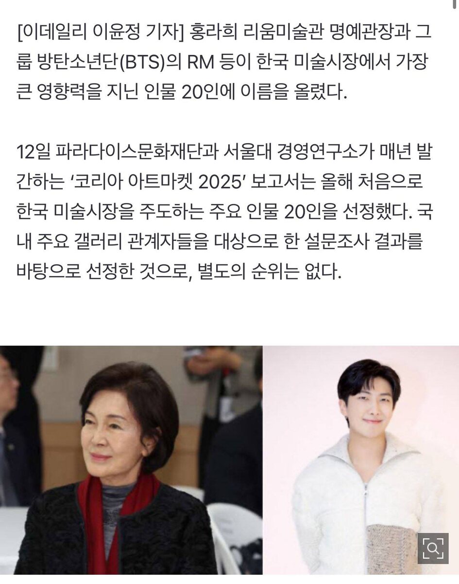 Намджун вошёл в список 20 влиятельнейших фигур на корейском рынке искусства!